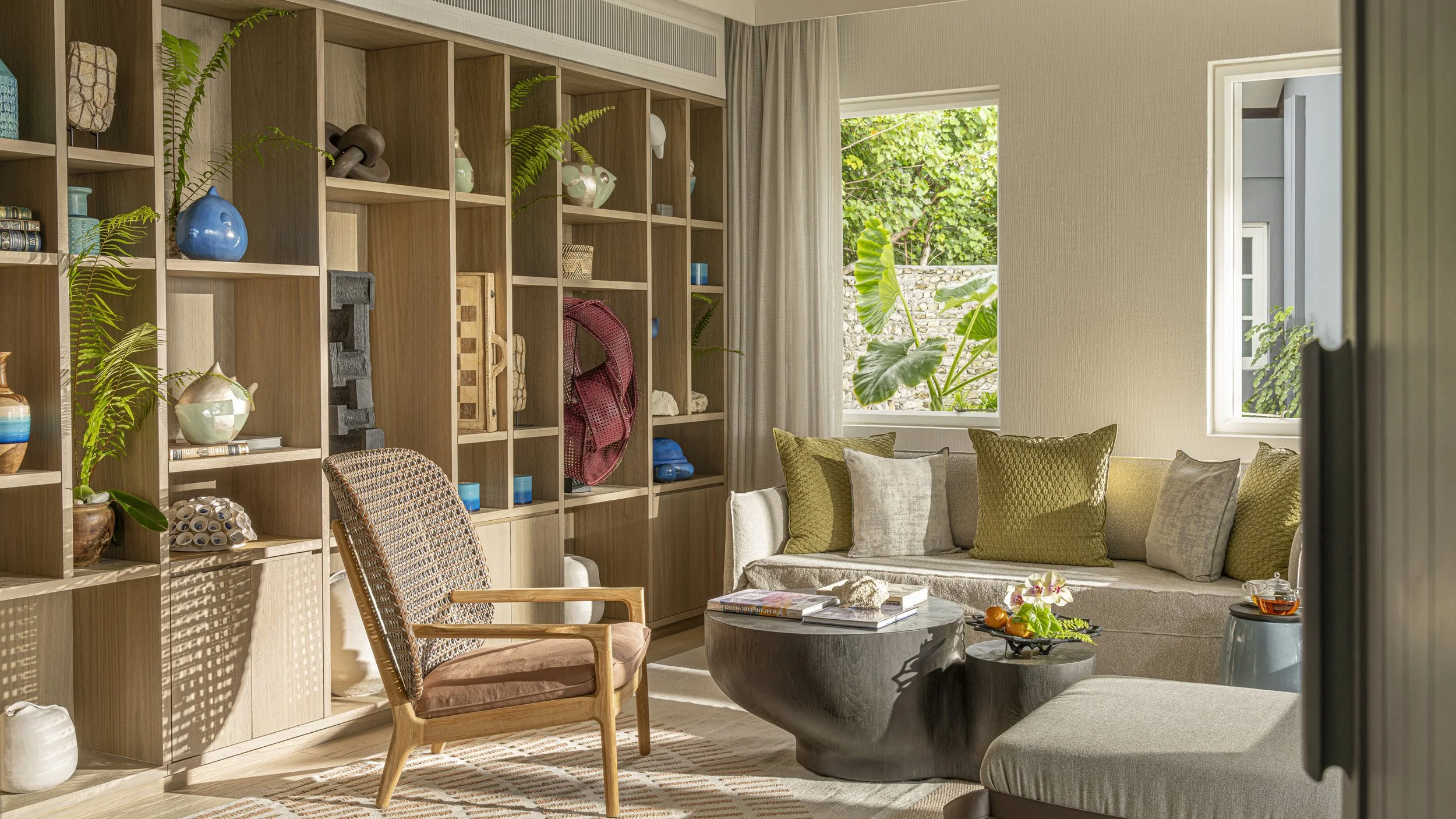 The Estate’s indoor-outdoor living spaces invite a deep immersion in the natural beauty of the surrounding Biosphere Reserve. A swimming pool with cascading waterfall, whirlpool and sundeck opens directly onto a private stretch of beach and the iridescent waters of Landaa's 2.5-kilometre (1.5 mile) lagoon. A large, suspended swing provides a dreamy perch to take in the mesmerising views – offering plentiful Instagram-worthy moments. The new sunken outdoor seating area provides a cosy setting for lively conversations, playful sunset gatherings, or peaceful reflection under the stars. The second-floor outdoor pavilion features a weather-sensor, maximising enjoyment in any condition – from sunrise to moonlight.